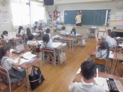 今日の国語の授業は「絵を見てお話を書こう」という単元でした。どのように学習を進めていくのかについて先生が子どもたちに説明していました。「想像を広げていくことが大事だよ」「場面のつながりを考えて」…なかなか言葉で説明されても難しそうです。子どもたちは先生と一緒に教科書に載っている絵を参考にしながら意見を出し合って、「こんな感じかな」「うまくできそうだね」…と少しずつ理解を深めていっているようでした。これから実際に取り組んでいくのですが、子どもたちの想像力は大人の想定をはるかに越えていきますので出来上がりが楽しみです。