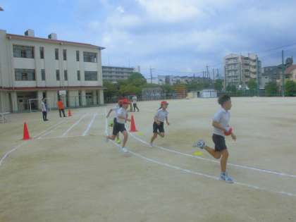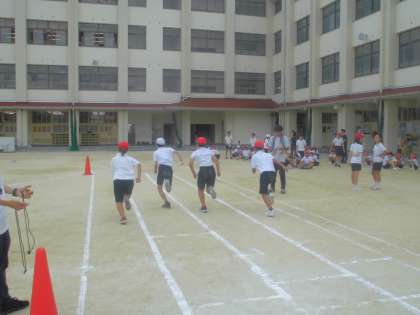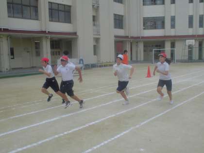 6年生の子どもたちが朝から元気に走っていました。トラックを一人一周します。今、東京で世界陸上が行われています。連日テレビでアスリートたちの活躍を目にしています。話を聞いていると、子どもたちも興味を持って観戦しているみたいです。トップレベルの競技を見るのは子どもたちにとっても大きな刺激になりますね。運動会の走競技に向けて参考タイムを計ります。久しぶりに全力疾走する子もいたようで、みんな走り終わったときにはハアハア言っていました。お互いに応援し合う声も自然に起こっていました。