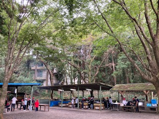 昼食のカレー作りが始まっています。野菜係、ご飯係、火起こし係に分かれて班毎に作ります。先生の分も各班に振り分けられているのでドキドキです。上手くできるといいな。