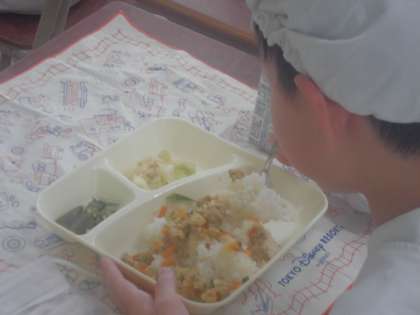今日の給食のメニューは、他人丼、ささみとキャベツの炒め物、オクラの甘酢和え、牛乳でした。他人丼は牛肉と細かく刻んだたまねぎ、にんじんを甘辛く煮て、最後に青ねぎを加えて卵でとじています。給食では十分に火を通さないといけないきまりがあるので卵は半熟ではなく玉のようになってしまうのですが味はとてもおいしいです。ささみとキャベツの炒め物はささみとキャベツを塩こしょう、醤油でシンプルに味つけしています。オクラの甘酢和えは大きめのオクラの食感が楽しめました。