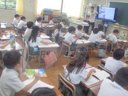 1年生の子どもたちが国語の授業で「サラダでげんき」というお話を読んでいました。今日は最後まで一通り読んで、はじめの感想をもつ時間です。「サラダでげんき」は登場人物の女の子が病気になったお母さんが元気になるように頑張ってサラダを作るお話で、毎年1年生の子どもたちが楽しんで勉強するところです。挿絵のイラストを見ることで、お話の中の世界に入っていきやすい思います。子どもたちははじめにもった感想を素直に発表し合っていました。サラダが食べたくなってきた子もいるかもしれませんね。
