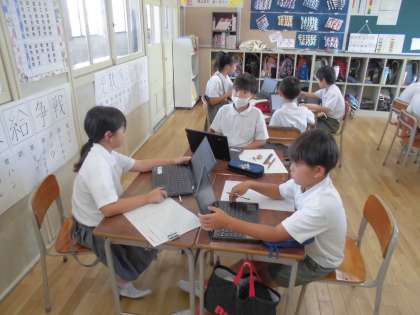 子どもたちはパソコンで調べるのは、とても慣れていますが、「先生、この漢字なんて読むん?」とルビがなく、難しい言葉使っているため少し理解しにくい。その点、国語辞典のほうが簡単な漢字で意味も分かりやすい。どちらの良さもありますが、国語辞典もたくさん使ってみましょう。
