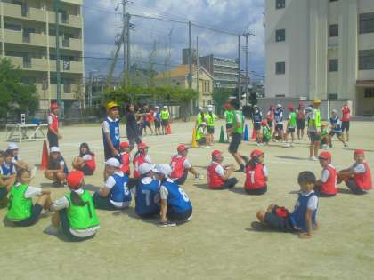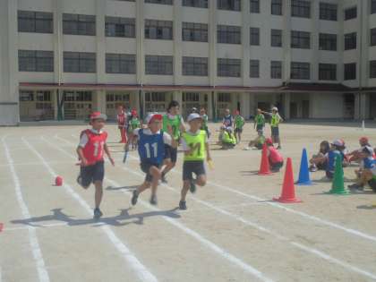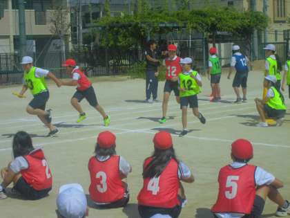 6年生の子どもたちの大きな声が運動場に響いています。リレーの練習をしていました。はじめに先生からバトンパスのポイントやバトンゾーンの有効な使い方などについて教えてもらいました。しかしいざレースが始まると、とにかく応援することに一番気持ちが入ってしまっている子どもたちです。「がんばれー」「いけー」「ぬかせー」「まけるなー」…いろんな声が飛び交っています。最後のアンカーまで各チームともしっかりと応援していました。小学校生活最後の運動会が楽しみですね。