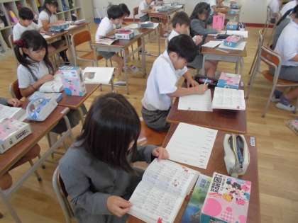 3年生の国語の学習では、物語や説明文の学習をするときにそのお話に出てきた新しい言葉の意味を調べます。国語辞典からその言葉を見つけるのは大変ですが、見つけたときはみんなとてもうれしそうでした。調べてわかった言葉はこれから生かして使ってほしいです。ご家庭でも少し難しい表現や言葉で話してみてください。