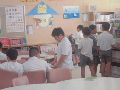 3年生の子どもたちも毎日忙しく活動しています。運動会の練習に理科の観察、もちろん普通にお勉強もたくさんあるし、「僕たちも大変なんですよ」という声が聞こえてきそうです。そこでちょっと休憩って感じで図書室で和やかにゆるりとする時間も持ちましょう。子どもたちはそれぞれ読みたい本を選んで落ち着いて読書タイムです。「う〜ん ゆったりするね」「つかれがとれるね」「ほっとするよ」…子どもたちのちょっとゆるんだ横顔を見ることができました。