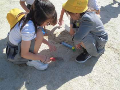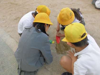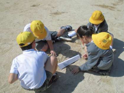 3年生の理科の学習で日なたの地面の温度と日陰の地面の温度を測りました。それぞれ土を掘って、温度計に土をかぶせて確かめていました。土を触ってみると、日なたの土は「さらさらしてる。」「かわいている。」に対し、日陰の土は「冷たい。」「湿っている。」と声を漏らしていました。なぜ暑いか、涼しいかを詳しく見ていくとそういうところもあったんですね。