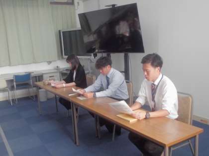 本日、6年生の保護者の皆さまにご出席いただいて、修学旅行保護者説明会を行いました。10月30日(木)〜31日(金)に伊勢志摩方面に修学旅行を予定しています。子どもたちには小学校で培った力をもとに、仲間と一緒に協力して活動し、有意義な体験をしたり素晴らしい思い出を作ったりしてほしいと思っています。志摩スペイン村や鳥羽水族館、二見の夫婦岩などをまわってきます。宿泊するホテルでの時間や家族へのおみやげの買い物など、子どもたちも今から楽しみにしています。これから秋も深まり気温等の変化も予想されます。体調には十分に気をつけて過ごしていきましょう。少し緊張している表情のかたい3人組でした。