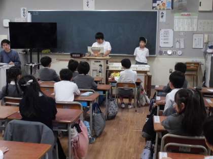 図書委員会の活動として、1,2年生に紙芝居を読みます。