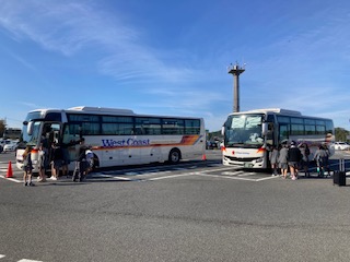 伊勢までの道のりはまだまだ遠いです。途中2回のトイレ休憩をとります。今はまだ伊賀上野を過ぎた辺りです。子どもたちはバス車内でもおしゃべりしたり音楽を聴いたり、思い思いの過ごし方で楽しんでいます。