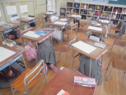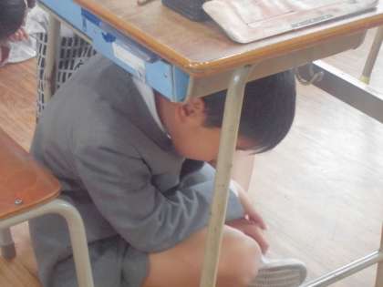 午前10時に屋外スピーカーから大阪市の防災行政無線の訓練放送が流されました。緊急地震速報のチャイム音が鳴り、地震に備えることと、その後津波からの避難が呼ぼかけられました。学校でも子どもたちは安全のために机の下に身を隠したり、先生たちから訓練の大切さについて説明を受けたりしました。災害は本当にいつやって来るのかわかりません。どんな時でも落ち着いて行動することが大切ですね。