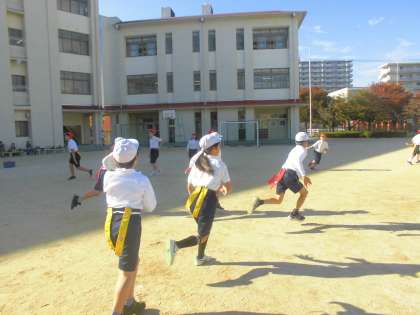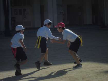 5年生の子どもたちが元気いっぱいに運動場を走り回っています。腰にタグをつけてお互いに取り合っています。タグ取りゲームです。赤白に分かれてそれぞれ大将を決めて、大将のタガが取られたら負けというルールでした。子どもたちは毎回対戦する前に集まって作戦を立てます。攻め方や守り方、役割分担などについて話し合っていました。ゲームを重ねるごとに作戦タイムがあるので、失敗を振り返って少しずつ改善を図っていきます。ルールも子どもたちの動きが活発になるように少しずつ先生が変化を与えていました。5年生の子どもたちがみんなで楽しんでいる様子を見てとてもうれしい気持ちになりました。