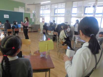 朝晩の冷え込みが厳しく、木々の葉っぱも少しずつ赤く染まって紅葉しています。秋の深まりが強く感じられる頃となってきました。そのような中で、今日は土曜授業として、学習参観と作品展を行いました。たくさんの保護者の皆さまに来ていただき、子どもたちの学習する様子を見ていただきました。ありがとうございました。子どもたちも普段の学校での様子をお家の方々に見てもらうことができて嬉しそうにしていました。進んで手をあげて発表したり友だちと仲良く交流したり、また真剣な表情を見せたり楽しそうに活動したりといろいろな姿が見られました。今日の学習だけでなく、4月から頑張ってきたことも含めて、たくさんほめてあげてほしいと思います。きっと子どもたちも喜ぶと思います。