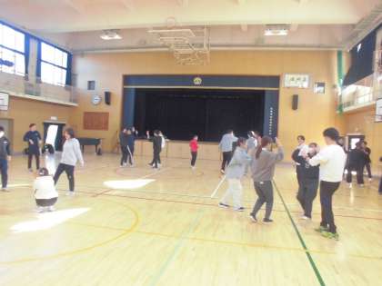 今日は60名ほどの先生達が研修に参加しています。自分たちが子どもになり、講師の先生から指導を受けています。若い先生だけあって動きも軽いし、楽しみながら研修に取り組んでいるようです。時折、笑い声が聞こえてきたり、ハイタッチしたりする先生も見かけました。ぜひ、今日の研修をそれぞれの学校に持ち帰り、明日からの授業にいかしてほしいと思います。それにしても、若いっていいもんですねぇ。