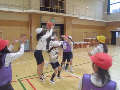 外は雨ですが、体育館から子どもたちの明るい声が聞こえてきます。「パスパス!」「走れ走れー」「ナイスシュート!」「OK!」…6年生の子どもたちです。体育の授業でバスケットボールをしていました。男女に分かれてそれぞれゲームを行っていました。激しくボールを奪い合ったり互いに励ましの声をかけ合ったりと、はつらつと躍動する姿が多く見られました。子どもたちの元気な姿を見ているとこっちも元気になれますね。