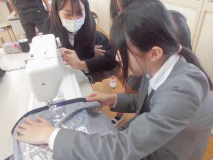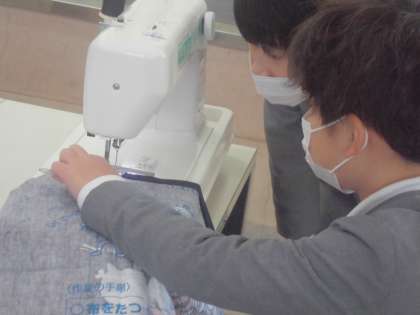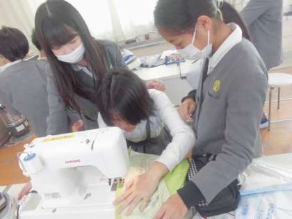「はやいって はやいってー」「やばいやばい めっちゃずれてるやん」「どうすんの これ!」…6年生の子どもたちがミシンの扱いに奮闘していました。エプロン作りの真っ最中です。どちらかと言えば男の子の方が冷静のようです。女の子の方がドタバタ騒いでいる感じがしました。でもみんな慎重に何とか進めていきます。学校のミシンは全然最新式ではありません。たぶん電気屋さんではもう売っていないレベルかもしれません。それに家庭にミシンがある家も少ないのではないでしょうか。そんな中での実習なので、子どもたちが騒ぐのも無理ないかもしれませんね。とにかくいつの日かエプロンが完成することを祈っています。