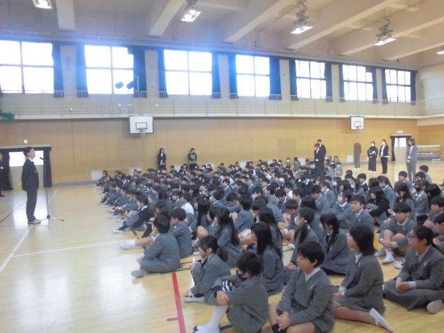 1時間目に講堂で3学期始業式を行いました。冬休みを終えて大道南の仲間たちが全員集まり、「明けましておめでとうございます」「今年もよろしくお願いします」と新年のあいさつをしました。みんなどんな冬休みを過ごしたのかな。言いたそうにしている子たちがたくさんいました。この後、教室できっと先生やお友だちにお話していることと思います。「一年の計は元旦にあり」「3学期は春の進級・進学に向けて大切な時期」の2つの話をしました。あわせて何より、「無事に」「笑顔で」「元気に」「明るく」新しい年を迎えることができたことをみんなで喜び合いました。3学期もみんなで一生懸命に頑張っていきましょう。