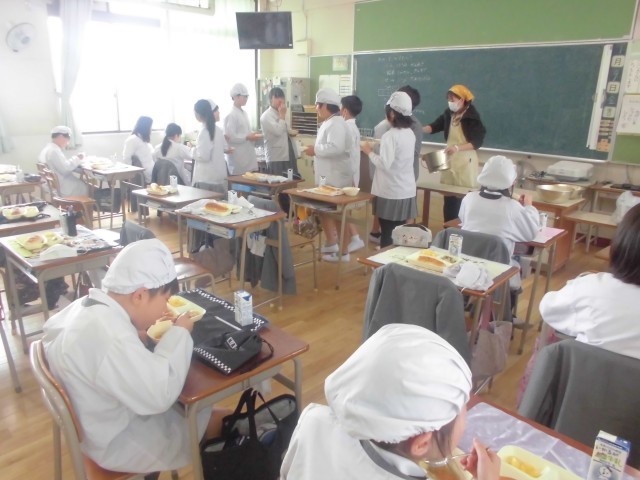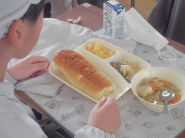 今日の給食のメニューは、あじのレモンマリネ、でぼ豆のスープ煮、白桃(缶)、牛乳、パンでした。今日から3学期の給食が始まりました。好き嫌いなくしっかりと食べて、心も体も大きく育ってほしいと思います。3学期も安全でおいしい給食を提供していきたいと思いますので、給食指導においてもご理解ご協力をお願いいたします。あじのレモンマリネは油で揚げたあじにレモンや米酢で作った調味液をかけています。添えているたまねぎにも味がしみていて、さっぱりした味わいでした。でぼ豆のスープ煮は彩りもきれいで、洋風仕立てで具材たっぷりでした。白桃(缶)は冷たくて甘かったです。