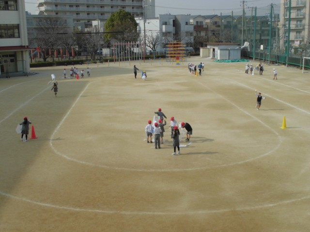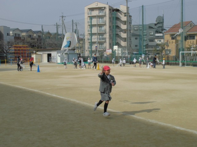 しかし、子どもたちは運動場を駆け回って高く上げるようにがんばっていました。