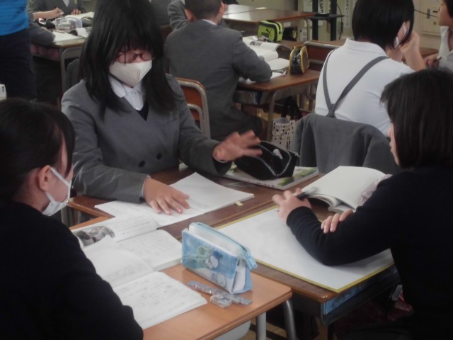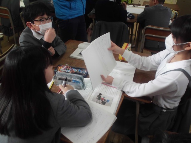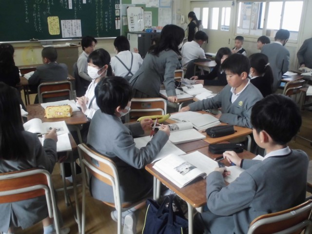 5年生の子どもたちが活発な話し合いを進めています。国語の授業の一コマです。一つのテーマに対してそれぞれの考えを出し合ってグループとしての意見にまとめ上げていきます。まずはノートにまとめて整理してから伝える子、思わず身振り手振りで話し出す子、友だちの意見にうんうんと耳を傾ける子、質問をして考えを深めようとする子…、どの子にも主体的な姿勢が見られ、どのグループも話し合いが活発に行われていて、ちょっと頼もしく感じてしまいました。もう次は6年生ですからね。