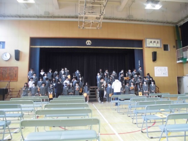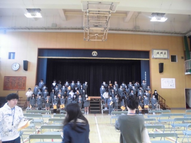いよいよ、今日から6年生が卒業式にむけて練習をスタートさせました。今日は、門出の言葉を中心に練習していました。初めての練習にしては、しっかりと声がでていて良かったと思います。今年度の6年生は例年より人数が多いので歌なども本当に聞きごたえがあります。明日からは、卒業証書授与などの練習にも取り組んでいきます。
