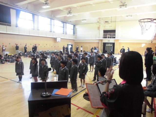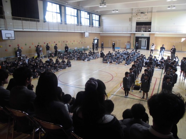 本日午前中2時間目に「卒業生を送る会」を行いました。講堂に全校児童が集まり児童会が中心となって、3月18日に卒業する6年生のお兄さんお姉さんたちをみんなでお祝いしました。5年生は在校生代表として18日の卒業式に出席しますが、残念ながら1~4年生は出席することができません。だから今日が大道南小学校の子どもたち全員で行う卒業式ということになります。各学年の子どもたちが順番に心のこもった歌やお祝いメッセージのプレゼントを全力で6年生に贈りました。