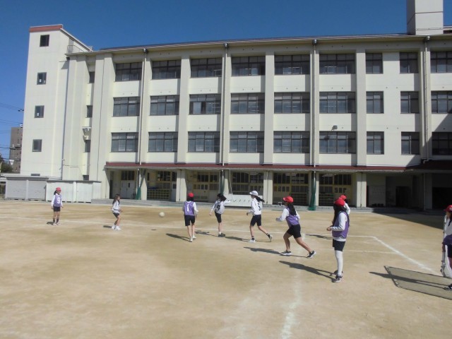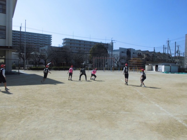 運動場から楽しそうな声が聞こえてきました。6年生が体育でサッカーをしていました。よく見ると先生もチームの一員としてサッカーしています。先生と子どもが一緒になって体育なんて素敵な光景ですね。子ども達も楽しそうです。これもよい思い出ですね。でも、けがには気をつけてくださいよ。来週はいよいよ卒業式です。