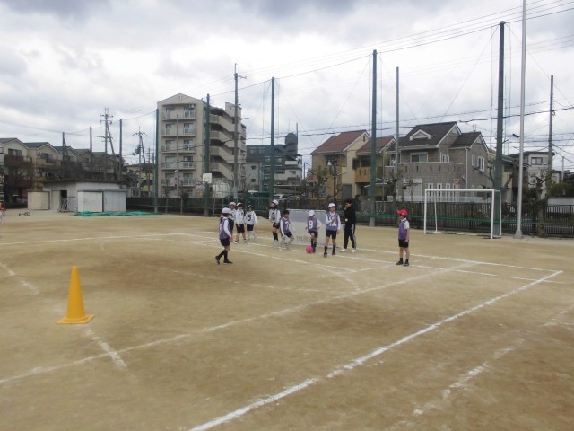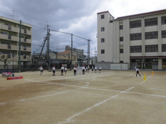さあ4時間目は3年生が体育です。風も強くなってきて、寒さが増しているように感じます。そんな中、元気いっぱいに3年生がサッカーに取り組んでます。子どもは寒さを感じないのでしょうか。誰一人「寒い!」なんて言いません。先生はどことなく背中が丸まっているように感じます。さあチームにわかれて練習開始です。