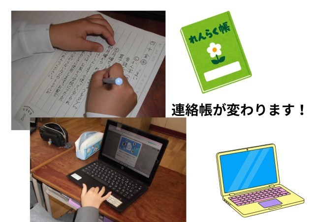 月曜日からは、今まで連絡帳に書いていた内容を一人1台学習者用端末に配信する方法に変わります。