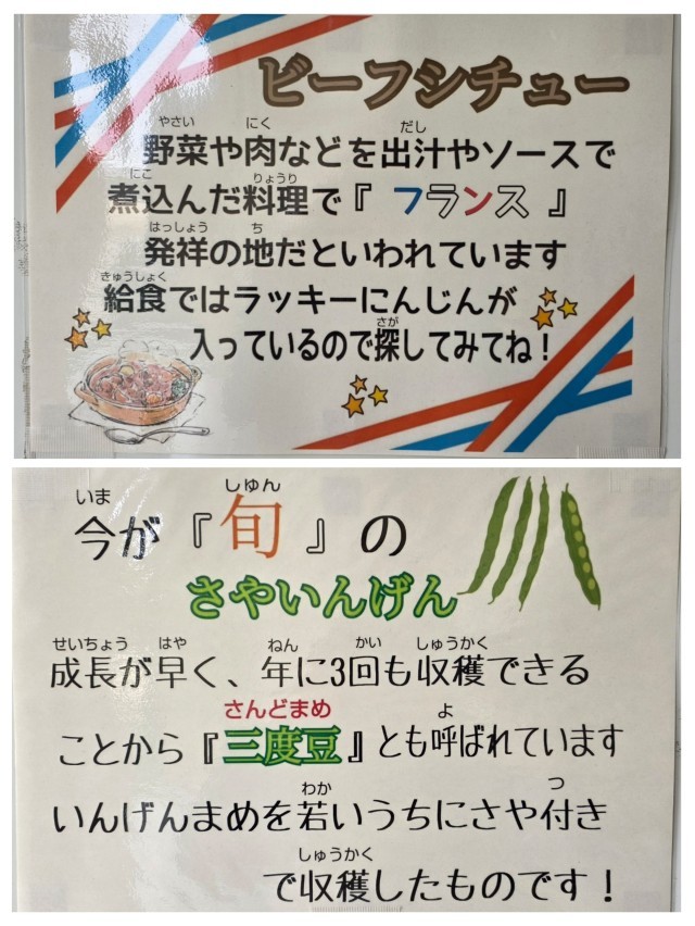 ビーフシチューにはラッキーにんじんが入っており、子どもたちは嬉しそうに食べていました(*^-^*)