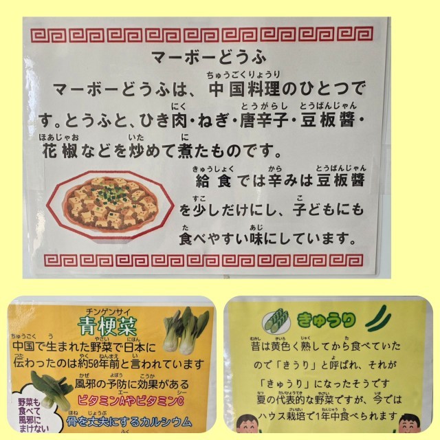 今日の献立には、中国料理の一つ「麻婆豆腐」があります。
