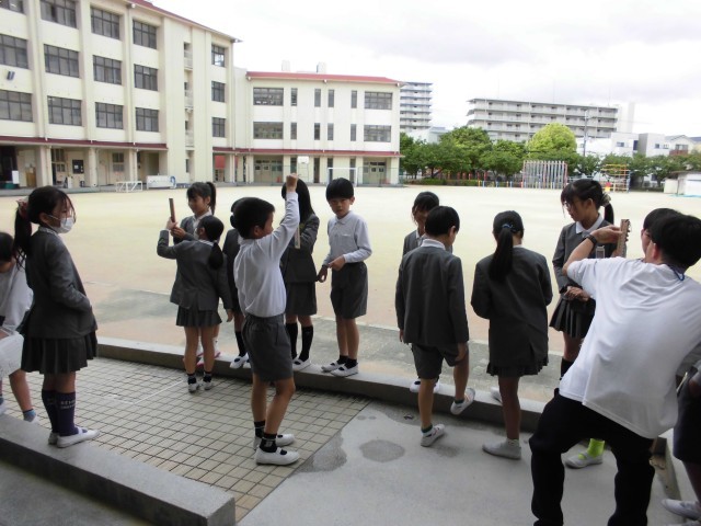実際に気温を測り、折れ線グラフに表すことで、天気と気温の関係について考えます。