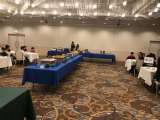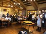 ビュッフェ形式の夕食が始まりました。あわててとりすぎたり、こぼしている人がいて、...