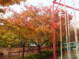 学校の隅にある桜の葉が青から赤色の紅葉になり、早くも散り始めました.今日は6年生...