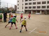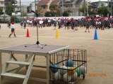 児童集会で、キッズファミリー対抗のボール運びリレーをしました。 低学年は両手でド...