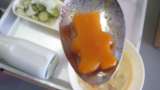 今日の給食 コーンクリームシチュー の中から 出たあ〜 く、く、くっ、クマ発見...