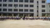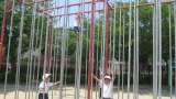 1年生がのぼり棒やジャングルジム、鉄棒、竹馬、一輪車などを使って運動遊びを行って...