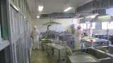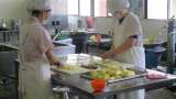 給食室におじゃましました。 3人の調理員さんたちが忙しく働いています。給食室は安...