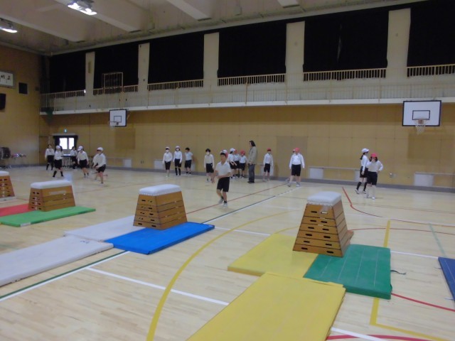 4年生の体育では、とび箱をしています。開脚とび、抱え込みとび、台上前転の3つを学...