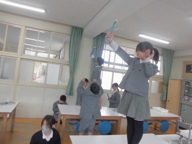 「机の上の乗ったらあぶないよ」…4年生の理科授業の一コマです。何をしているのかな...