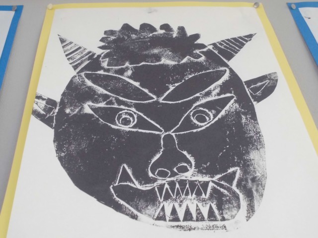• 鬼(おに)の紙版画 1年生