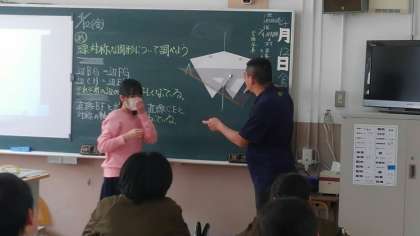 3時間目、6年生が算数の学習をしていました。線対称な図形について学習していました。