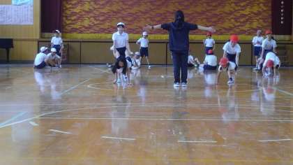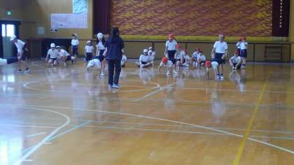 4時間目、5年生が講堂で体育の学習をしていました。