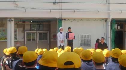 校長先生のお話のあと、健康委員会の児童から、給食についての説明がありました。そのあと、谷輪先生から、あいさつについてのお話がありました。あいさつがしっかりできる人になってください。