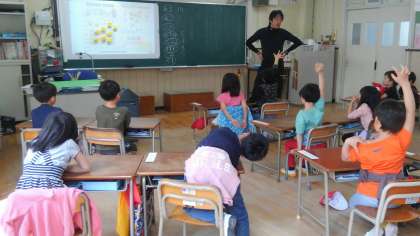 3時間目、1年生が算数の学習をしていました。数えかたを工夫して考えていました。