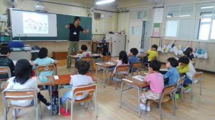 「ちいきのひとたちがじぶんたちを守ってくれている」ことや「じぶんたちのために、給食をつくってくれているひと」に対して、「ありがとうございます」という感謝の気持ちについて、話しあっていました。