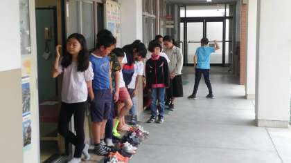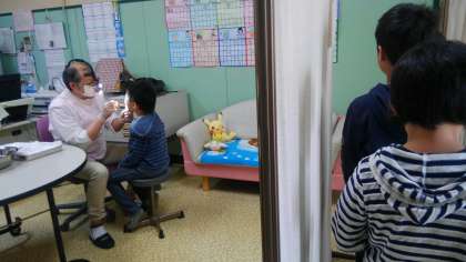 今日は、1時間目、5年生が保健室で歯科検診をしていました。