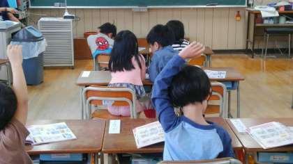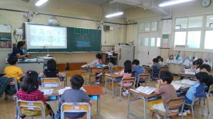 1時間目、1年生が「通学路の安全」について、学習していました。