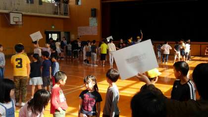 今日は、縦割り児童集会がありました。みんなでゲームをして楽しみました。6年生の人が1年生を誘導していました。