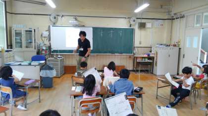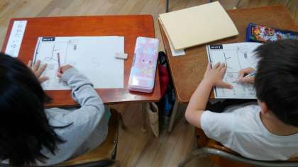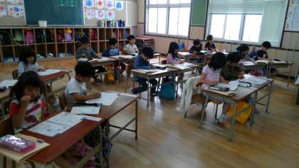 1時間目、1年生がこくごの学習をしていました。「す」と「よ」の書き方を学習していました。
