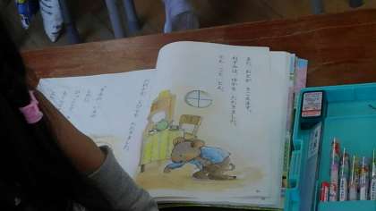 こくごの教科書を読んだあと、連絡帳を初めて書いていました。